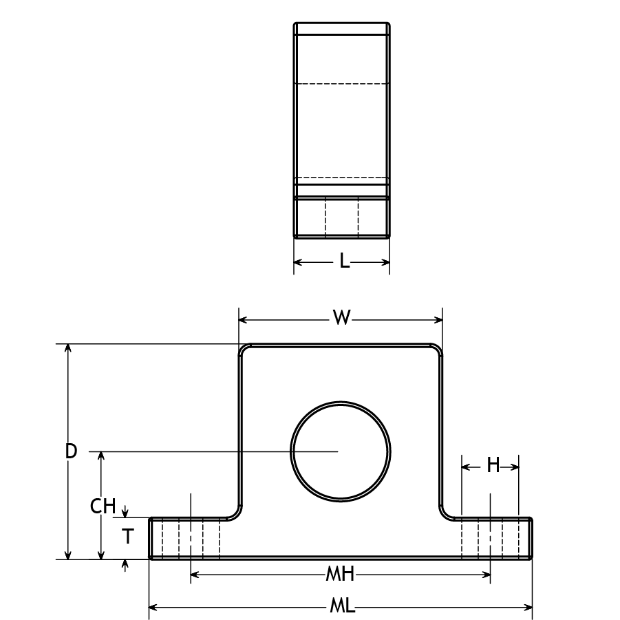 Part No. L Hole Size ML MH CH Shaft Size Material Code Color Type Material D Quantity