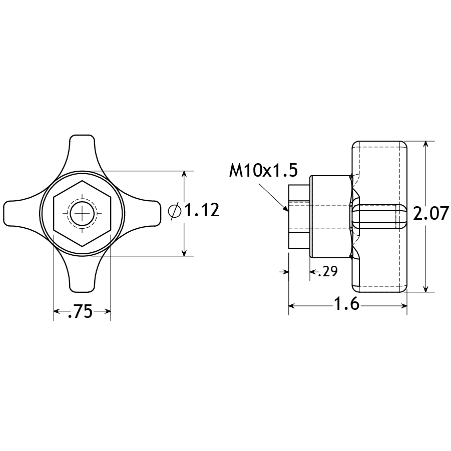 PP227 N/A 1.9" 1.66" N/A N/A Knob Y Black Polyamide M10