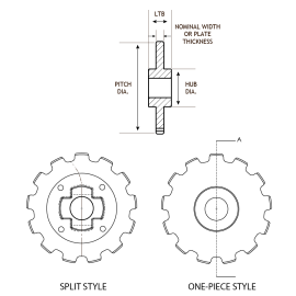 | Part No. | LTB/Width | Hub Diameter | Pitch Diameter | # of Teeth | Bore | Chain/Belt Type | Style/Type | Material Code | Color | Material | Quantity | |