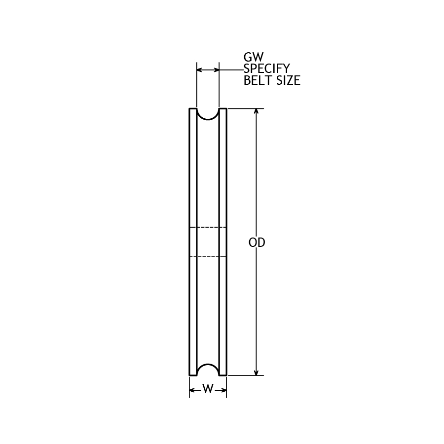 PULLEY ROUND BELT WHITE UHMW 10″ OD, 3/4″ W, 1/2″ BORE