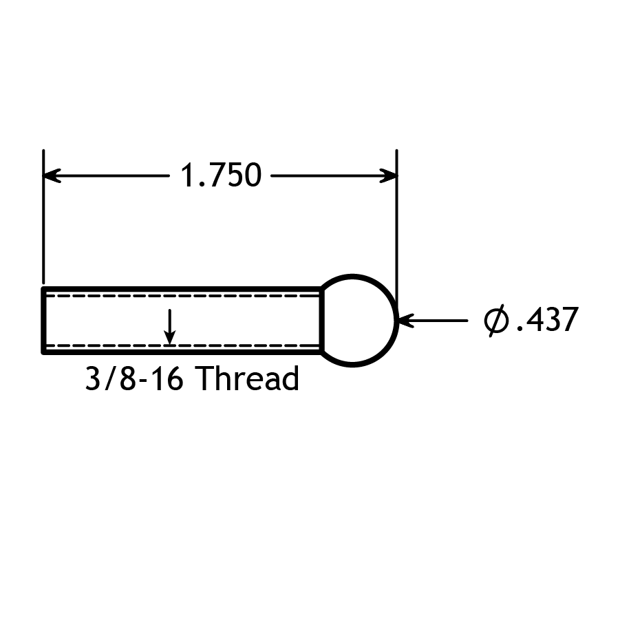 STAINLESS STUB SHAFT ROUND BALL END 3/8-16 THREAD X 1-3/4