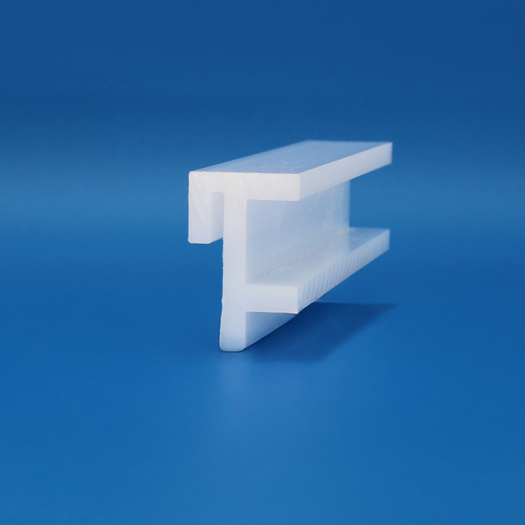 BELT GUIDE FLUSH EDGE WHITE UHMW FOR 1/8″ RAIL X 10′ LENGTHS