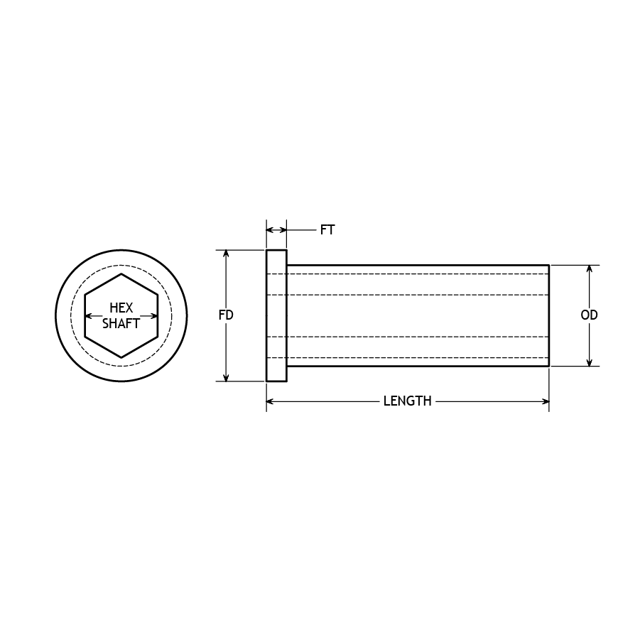 HEX SHAFT ADAPTER STEEL – 1/16″ FLANGE