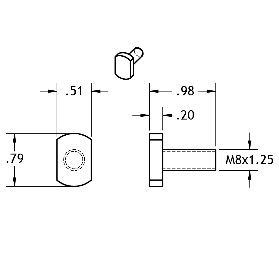 STAINLESS T-HEAD BOLT M8 THREAD