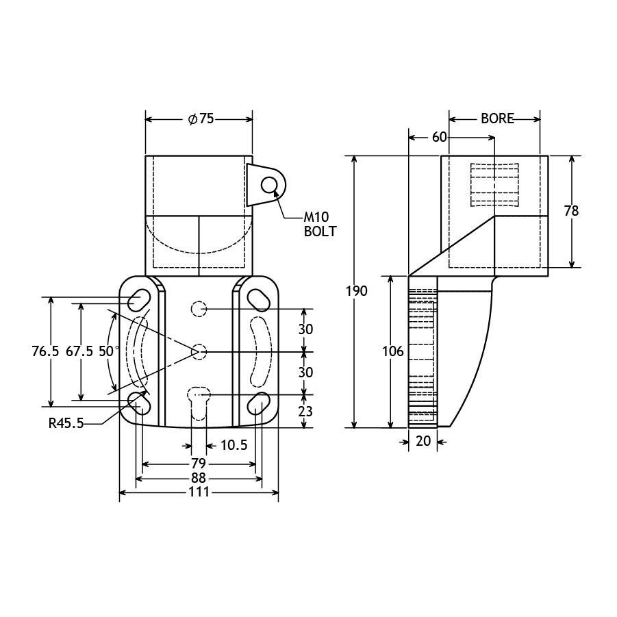 PP80791111mm2" Pipe190mmM10 BoltN/ABlackSide Mounting BracketReinforced Polyamide
